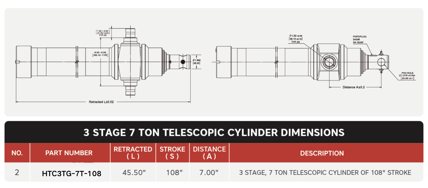 "HTC3TG-7T-108", 3 चरण, 108 का 7 टन" स्ट्रोक टेलीस्कोपिक सिलेंडर
