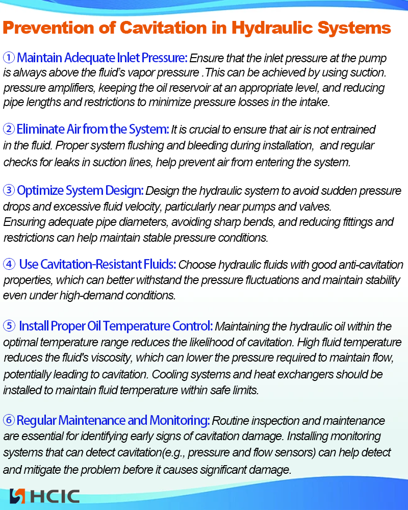 ⑤ उचित तेल तापमान नियंत्रण स्थापित करें: इष्टतम तापमान रेंज के भीतर हाइड्रोलिक तेल को बनाए रखना गुहिकायन की संभावना को कम करता है। उच्च द्रव का तापमान द्रव की चिपचिपाहट को कम करता है, जो प्रवाह को बनाए रखने के लिए आवश्यक दबाव को कम कर सकता है, संभवतः गुहिकायन के लिए अग्रणी है। सुरक्षित सीमा के भीतर द्रव तापमान बनाए रखने के लिए कूलिंग सिस्टम और हीट एक्सचेंजर्स स्थापित किए जाने चाहिए।