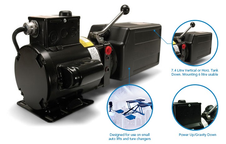 छोटे, कम ऊँचाई वाले ऑटो होइस्ट के लिए डिज़ाइन किया गया है और इसे क्षैतिज या लंबवत रूप से लगाया जा सकता है। मोटर पर एक पुश बटन वाहन को लिफ्ट पर उठाने के लिए यूनिट को चालू करता है। निचला, मैन्युअल रूप से संचालित कार्ट्रिज-शैली रिलीज वाल्व का उपयोग कम गति के उंगली-टिप नियंत्रण के लिए किया जाता है।